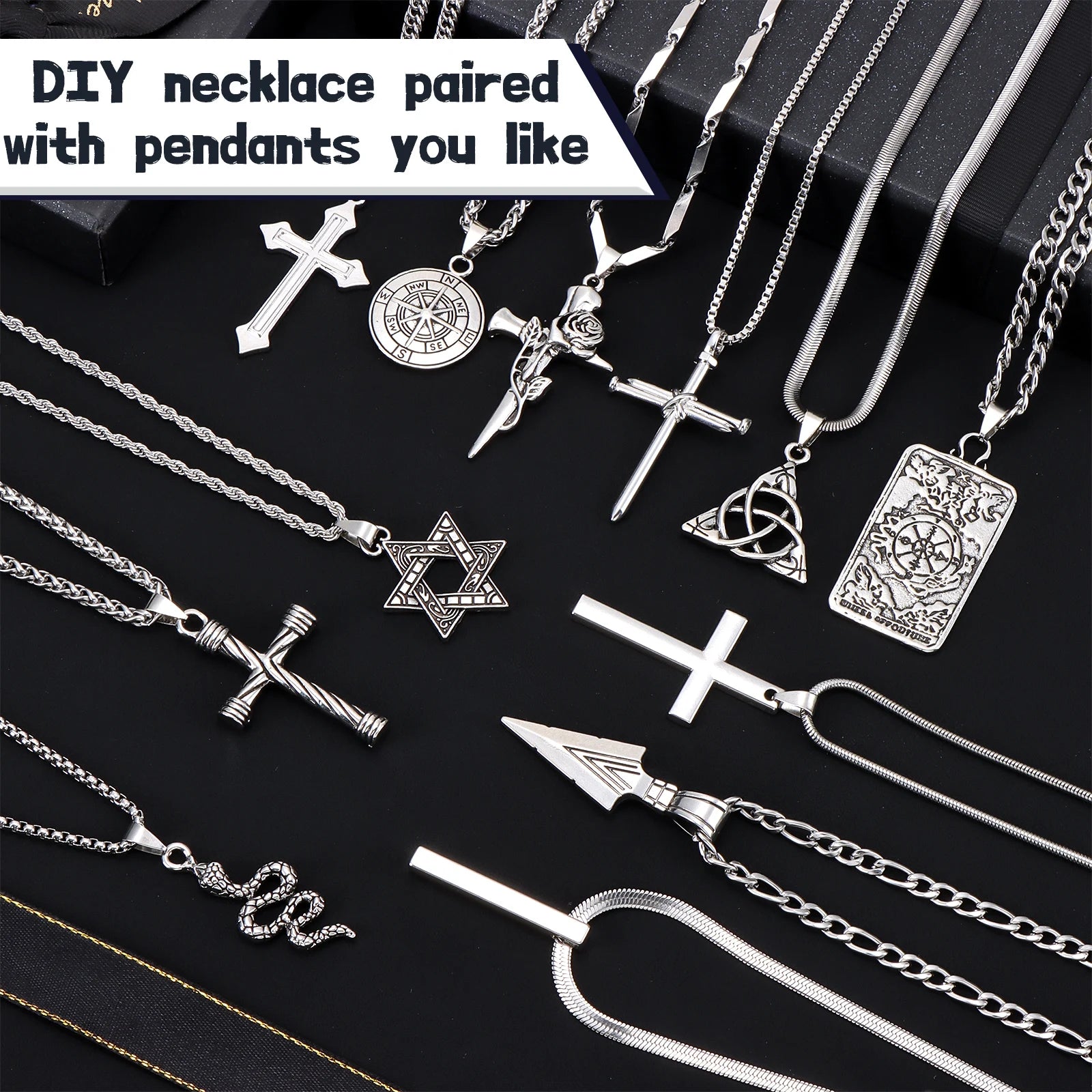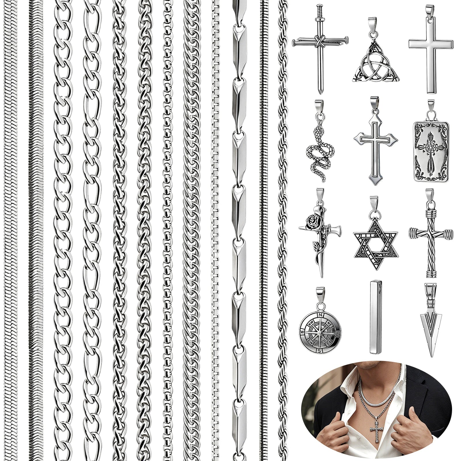 Men's Necklaces Set: You will get 10 men's necklace chains, and 10 different styles of pendants. Different styles can meet your various needs for different occasions. You Can Wear One Necklace Alone, Or Other Pendant Necklaces,A Combination of Two Necklaces, Or Three Necklaces.Add a Touch of Sophistication to Any of Your Outfits